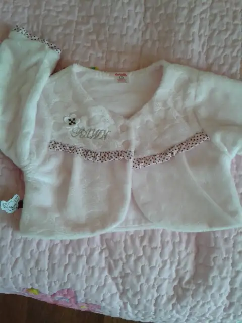 bebetto bolero. 9 ay yazıyor ama kızıma yine 1 yaşından sonra da giydirdim. zaten birkaç kez giydik. temizdir bu da. 10 tl.