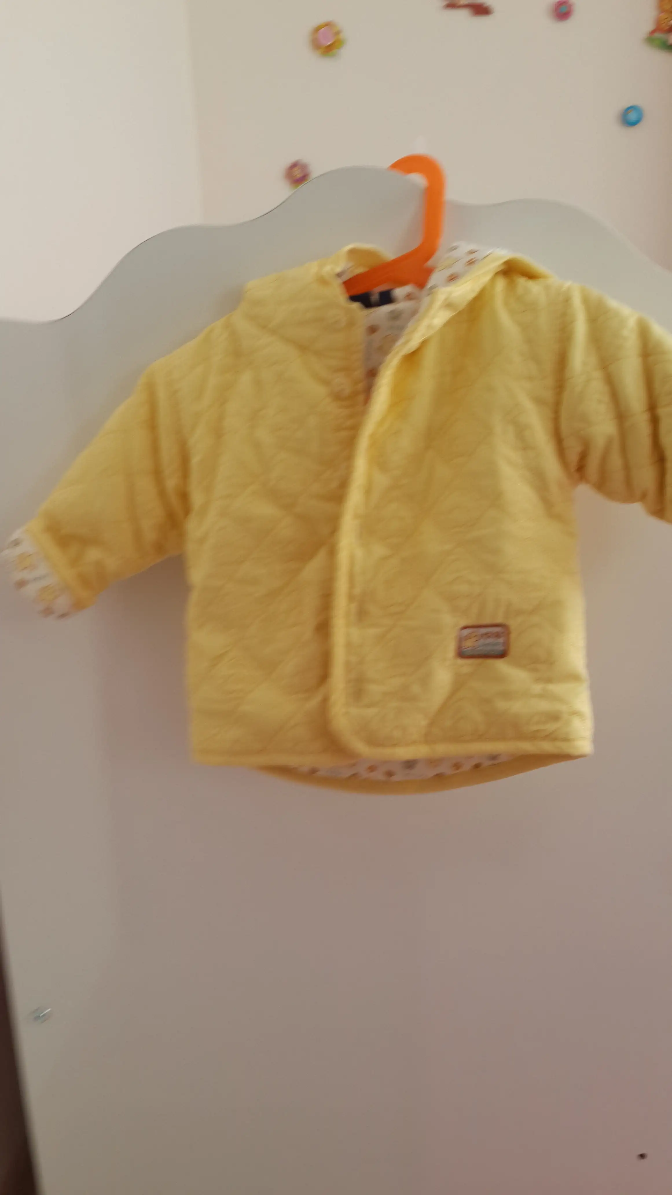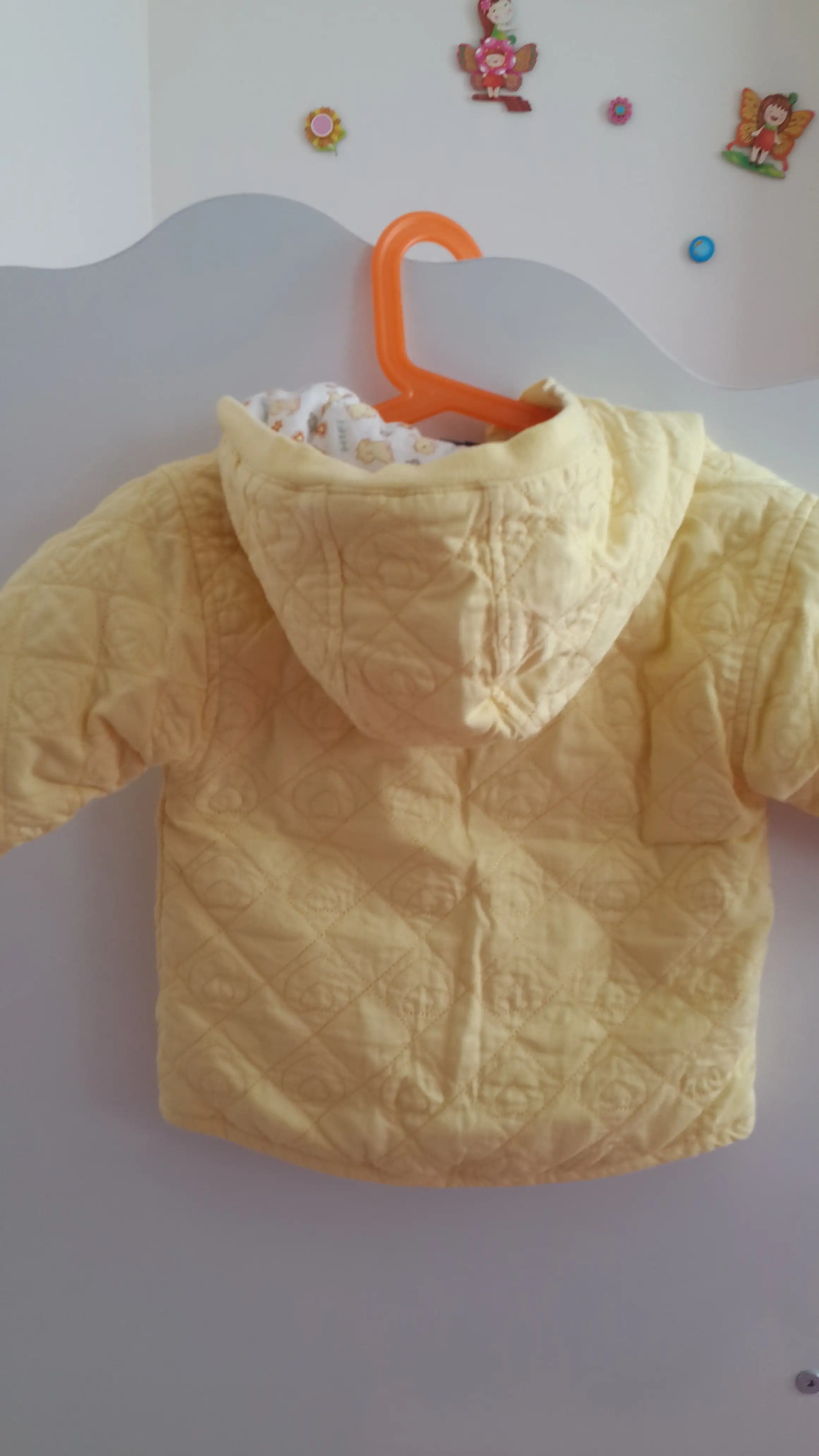 Sarı kapitone tarzı kalın pamuklu mont ,çift traflı giyim ile kullanıslı(tertemız)68cm 20tl