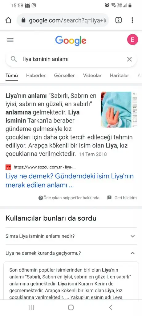 Ekran resmini dahi çektim keske sizde yorumlarınızı önce araştırıp sonra yapsanız.Liya'nın gerçek anlamı bu değil.