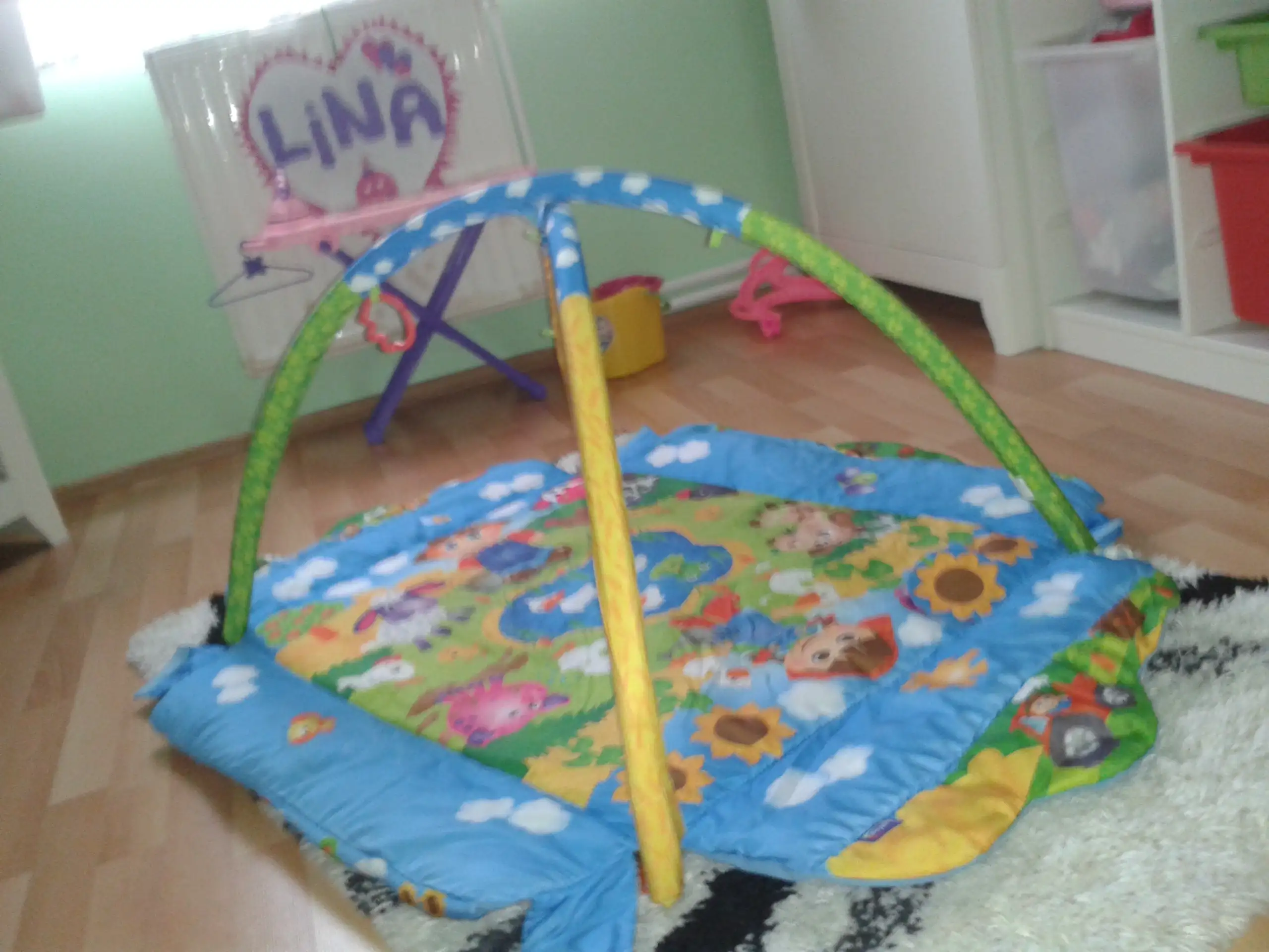 Playgro oyun alanının orjinal oyuncaklarını biraz yıprattık ama temiz oyuncak ekleyip göndericem isteyene