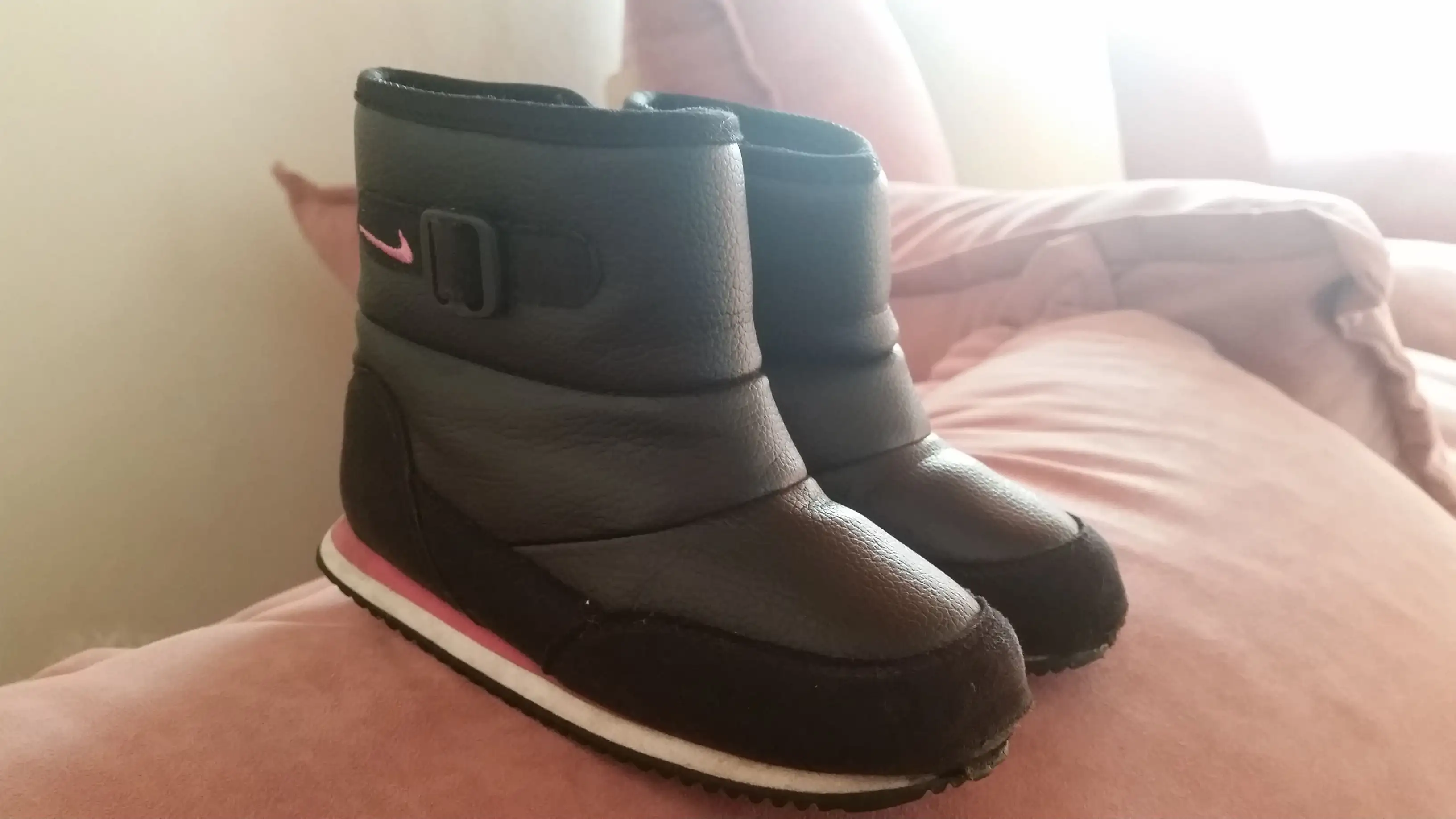 bot 24 numara cnm evet altinda pembe serit var nike yazisida pembe cocuk ne kadar kullanirsa sapa saglam burnunun alt kisminda hasri var biraz ama delik galan degil kumasi zedelenmiz giydiginde belli olmuyor cunki alt kizminda kaliyor olursa sizin ayaginiza huna takim ca montumuzda var