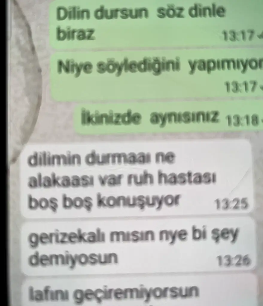 En küçüğü değilde 7 sene önceye kadar en küçüğüydü. Biz küçükken de sürekki kavga ederdik fiziksel olarak da. Bakın anneme yazdıkları bunlar.Ailen çok şımartmış, bu yaşına kadar bir dediği iki edilmemiş. Hatta çocukken sırf ağlayıp zırlamasın , gürültü yapmasın diye leb demeden istediği şey önüne gelmiş. Evin en küçüğü. Tahminim doğru mu?