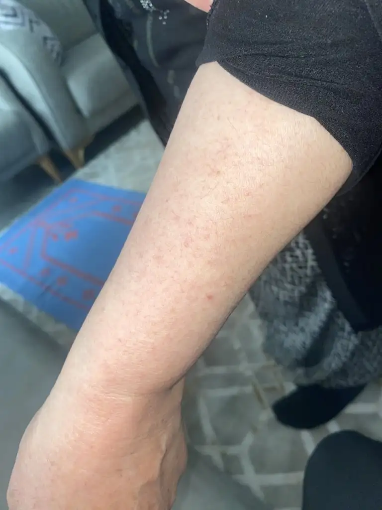 merhabalar arkadaşlar annemin sağ elinde bu şekil kızarıklık ve avucunun yanında pütür pütür hafif kabarık şey çıktı sizce bu neden olabilir