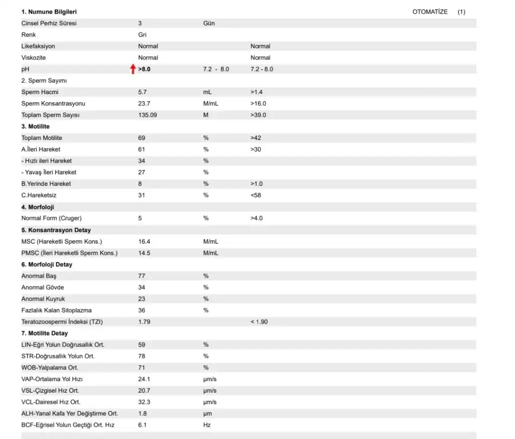 Eşim sperm örneği verdi doktor Super dedi ama netten baktım hiçte süper değil bir daha ki ay tup bebe demiştik görüştüğümüz tüp Bebek doktoru da sperm örneğine temiz dedi bn anlamıyorum böyle sonuçlarda takviye ilaç veriyorlarmis bize hiç birşey verilmedi pata almak için mi bu kadar acımasız olmuş insanlar aşılama yapicak yarın ne yapıcam.bulmiyorum eşimin bu sonucu ile sonucu rica etsem bakar mısınız