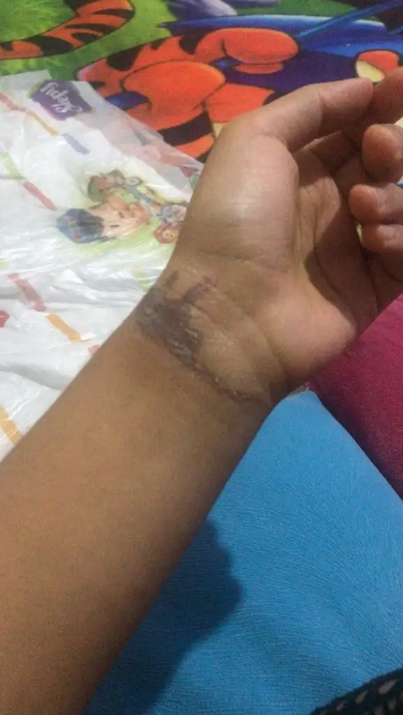Merhaba 28 nisan günü bileğime kızgın yağ sıçradı . Araştırmalarım sonucunda yağ yanıklarında iz kalabiliyormuş ilk bir hafta aloe Vera ve madecasol sürdüm siyah bir kabuk oluştu sonra kabuk soyuldu altında kahverengi kırmızı karışık şekil boyunca iz kaldı konuyla ilgilenen ve yardımcı olmak isteyen arkadaşlar için zaman zaman paylaşacağım resmini ve ilk halini