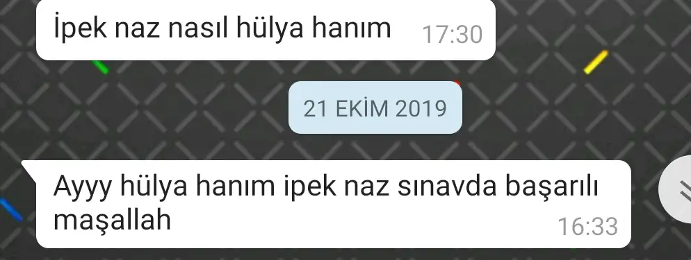 Zilin çalmasına 15 dakika var ve aranarak whatsapp üzerinden taciz ediliyorum. Nisanur denince aklıma geldi:KK70: böyle saçma bahane olabilir mi 15 dakika erken almak için? Bir hafta sonra en ufak bir olayda çocuğu okula gelmek istemiyor diye beni arıyor. Neden acaba...