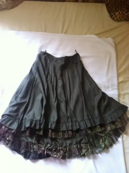 Haki yesili onu kisa arkasi uzun model uclar dantelli etek 36 beden ama 38 e hatta 40 bedenede olur. Bir iki kez giymisimdir. Yepyeni cok guzel. iPhone 'den Kadınlar Kulübü aracılığı ile gönderildi