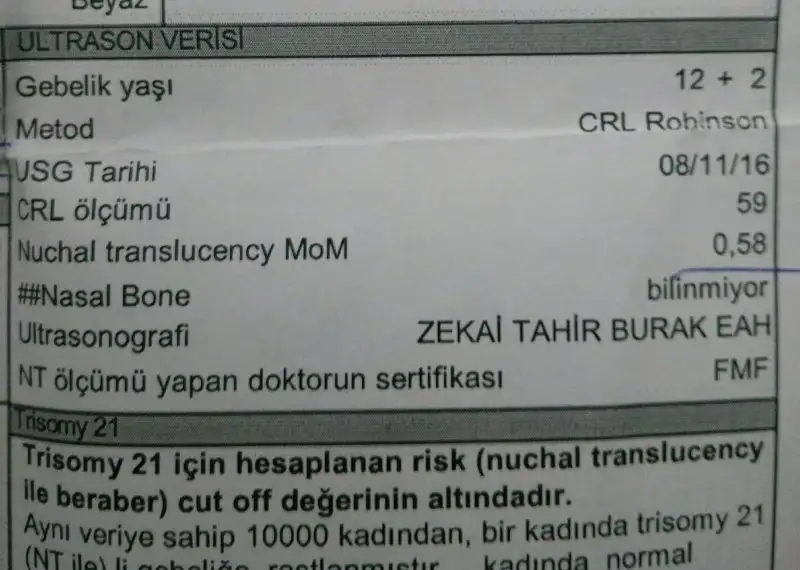 8 kasimda 12 +2 günlükken 2li test yapilmisti birtek o var elimde ama öylece bakıyorum biseyde anlayamıyorum ki kafam hiç basmiyo sanırım: ( CRL ölçümü 59Normalde son adet tarihi baz alınır, ultrason hesabı bebeğin haftası ile uyumlu gelişip gelişmediğini gösterir.
