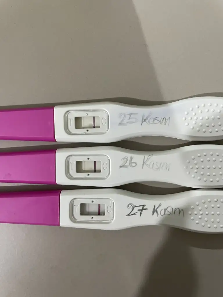 Hayırlı geceler kızlar. Regl bitti ertesi gün ovülasyon testi yapmaya başladım. Fotoğrafını bırakıyorum. Bana gittikçe koyulaşıyor gibi geldi henüz pik göremedim ama koyulaşıyor günden güne. Sizce nasıl günden güne koyulaşmış mı? Doğru mu ilerliyorum? Hergün aynı saatte yapıyorum.