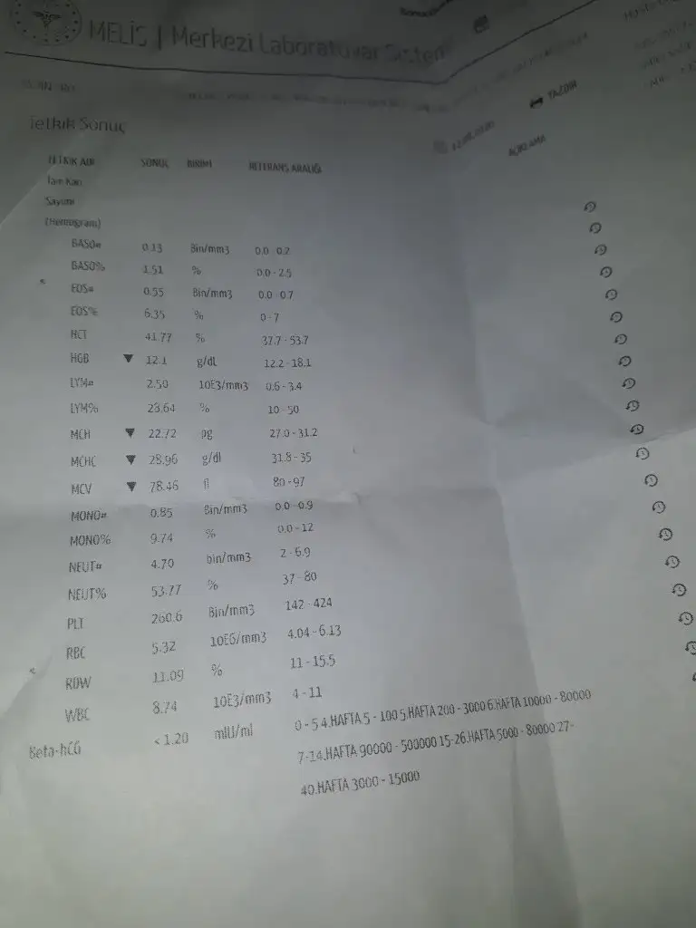 Yok canim kadin dogum doktorum istediBazi degerleriniz düşük görünüyor zaten orada. Büyük bir düşüklük olmadigi icin ciddi bir sey yok bence. Hemogram jinekolojinin öncelikli olarak istediği bir tahlil mi?