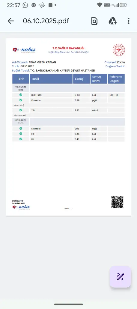 Sonuçlarım için direk şehir hastanesine yönlendirilme yapıldı 12 kasımda randevumuz var büyük ihtimalle oradaki doktorum isteyecek. Daha önce eşimden sperm testi