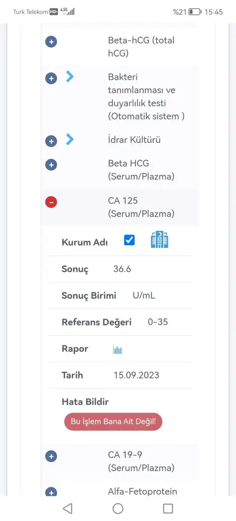 Diğer ca larınız nasıl,bu değer sınırın çok az üstünde,kistiniz mi var?Benim kistten dolayı bakıldı 30 cıktı sonucu,değerin cok üstünde olmadıkca önemsemiyor genelde doktorlar,tabi siz mutlaka dr unuza danışın.
