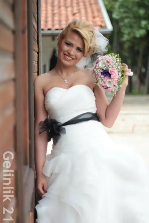 Canım bunların hiçbiri de güzel değil ki(Gelinliğine de uymuyor. Bence canlı çiçek çok daha güzel duruyor. Ya da daha mini mini yapay durmayan bir şey yaptır. Bak bu çok hoşuma gitti benim:
