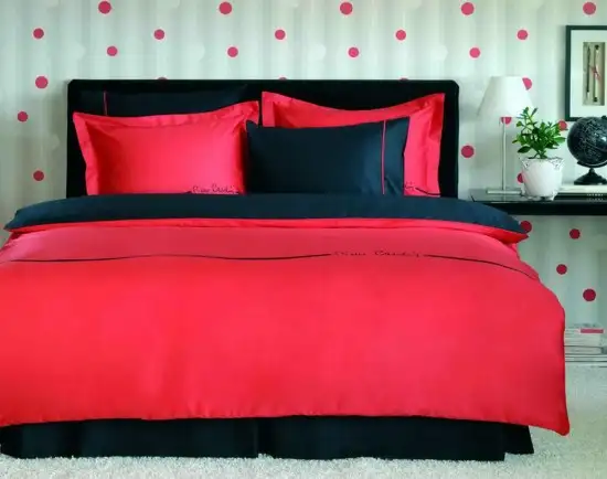 Vayyy ateş kırmızı heee :)) O zaman benden sana tavsiye sen yine beğendiğin bir nevresim takımını al ama kesinlikle düz desensiz kırmızı saten (pamuk saten değil ama saten) nevresim takımı al. Benim nişanlımda siyah hastası, düz siyah saten nevresim aldık bizde.O düz modellere de çarşıda falan bakabilirsin.