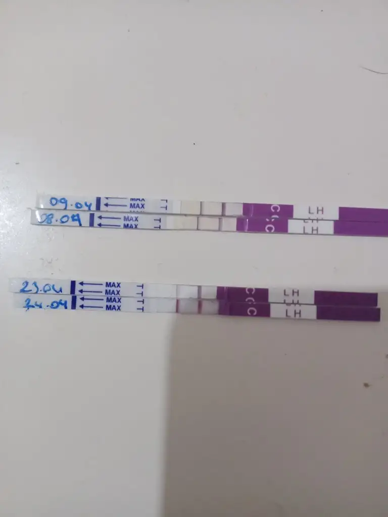 Usttekiler tam.yumurtlama değil üstteki iki test biraz silik ama alttaki ikinci test Baya koyu ona pik diyebiliriz bence alttaki ikinci testte yumurtluyorsunuz değerlendirin bu test markası güvenilir bir markaKızlar ben 8 ve 9 nisan da ovülasyon testinde pozitif gördüm o günden itibaren de inanılmaz göğüs hassasiyetim başladı ve şuan hala devam ediyor. Dün gebelik testi yaptım negatifdi bugün tekrar ovulasyon testi yaptım pozitif çıktı sizce 2. Sefer yumurtlama mı oluyor yoksa regl mi olucam. Regl olarak da sadece kahverengi lekem geldi bugün ama bazen yumurtlama kanaması olurmuş belki de öyle bir durum mu ki diye düşündüm. Fotoğrafları ekliyorum lütfen fikri olan yazabilir mi üsttekiler biraz fotoğrafta silik çıkmış ama pozitif ti yani bu arada adet düzensizliğimde var.