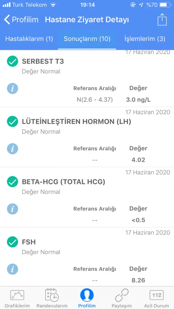 Merhabalar hanımlar biz 10 aydır korunmuyoruz ve maalesef gebelik elde edemedik . 25 yaşındayım ve geçen hafta doktora gittim . Testler yaptı ve tsh, fsh, lh , amh gibi testler yapıldı daha önce amh dışında bütün testler yapılmıştı zaten ilk kez amh yapıldı bugün de internetten baktım sonuçlarım çıkmış doktorum danda randevu almak biraz sıkıntılı olduğu için ayın 29 una bulabildik sıra. Eğer anlayanlarınız varsa test sonuçlarımı yorumlar mısınız lütfen . Hepinize çok teşekkür ederim