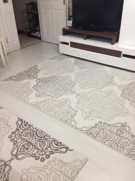 En son resimdeki guzel bence bizde evde oyle kullaniyoruz gayet guzel durmus ama unetinin onundekini biraz yukari ceksen birlestirsen halilari nasil durur acaba?