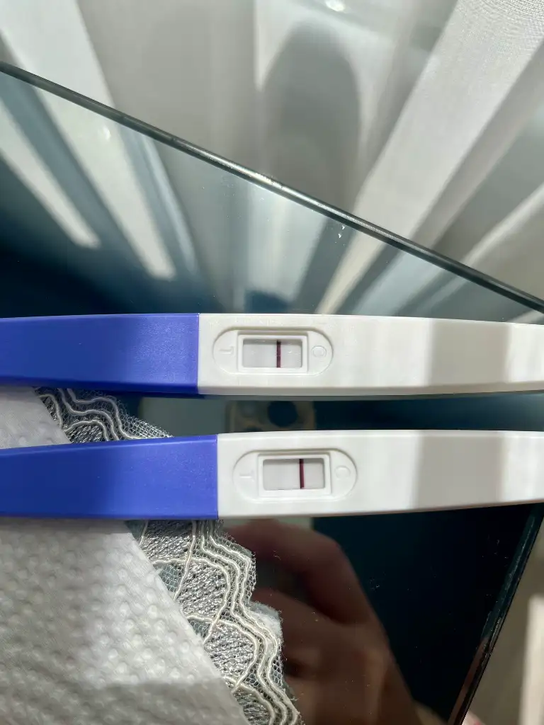 Kızlar ateş basması kasıkta hafif ağrılar dün akşam tam belimin ortasında başlayan bi ağrım var bugünde devam ediyor adetime daha var üstteki 2 gün önce yaptığım test alttakini bu sabah ilk idrarla yaptım 5 dakika içinde silik bi çizgi gördüm çok heyecanlandım ben elimde net farkı görüyorum siz ne düşünüyorsunuz görebilen var mı 🥲
