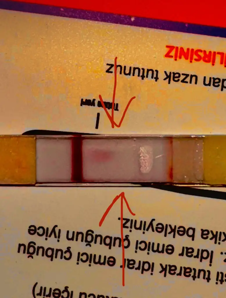 Siz çıplak gözle gördüyseniz doğru da olabilir. Emin olabilmenin tek yolu testi tekrarlamak ya da kan vermek. Fotoğrafta kalite de düşünce bazen çok silik olan çizgiler burada seçilemeyebiliyor ne yazık ki…Ah chat gpt… normal halinde de gördüğünü söylemişti(( ben mi göremiyorum diye kontrast yaptım daha belirgin dedi. Çok yanılttı beni