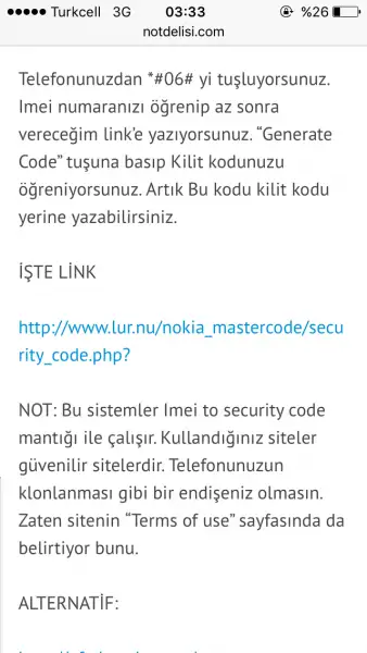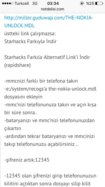 Birde nette bişeyler buldum. Sanırım nokialarda işe yarıyormuş denemek lazım