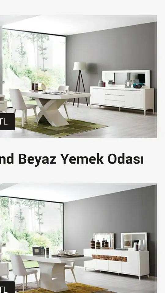 Yemek oldasi olarak kahverengi sandalyeli takima bayildim. Cok begendim. Cok zarif omurluk denebilecek bir takim. ama size tavsiyem kesinlikle konsol disinda parca almayin yok vitrin yok gumusluk. Sadece masasi ve aynali konsolu yeterli.