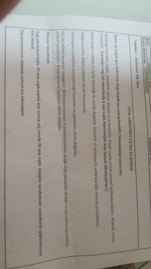sonra 2 haftadır bitmeyen ağrılar yaşadım sırt ve kasık bölgemde... neyse genel cerrah doktoruna gittim tüm bat ultrason cekti... ve kist çıktı yıkildimmmmm acil kadın dogum doktoru bulup gittim... ve keske klomen içmeseydin dedi yeterince saglikli yumurtalarin dedi... iyikide 2 tane icmemissin dedi... ve ben bu ay hamile kalma işi gecti diye kas gevseticiler kullandım agrim cok diye... bu yeni gittiğim doktor gebe bile olabilirsin dedi adet olmazsam gidecem tekrar... 6 gun kaldi adetime.... bu klomeni icipte ayni sorunu yasayan varmi .. 7 gunde bu kadar buyuk kist olabilir mi? Diger doktor 5 ocakta baktiginda ultrasonla hic bisey yoktu.... dun ise 50 mm 52 mm kist ve karacigerde 6 mm hemonjen oluştuğu yaziyor... cok kotuyum nolur bilgisi olan yardim etsin bana