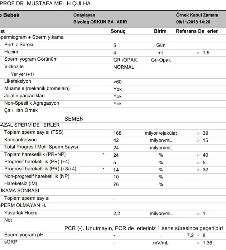 canı bende döllenme olmayınca emek hoca sperm dna hasarı fragmantasyonu testı ıstedı. özel bı lavoratuvarda verdık. sonuc ıyı cıktı. sıze urolojı nıye rapor vermedı kı anlamadım sperm testı kotu mu cıktı. vitamin cok ıse yarıyor. ne verdı vıtamın?Sperm dna hasar testi hangisi oluyor
