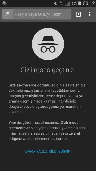 Bunu diyorlar. Yeni gizli sekme' ye tıklayınca geliyor.