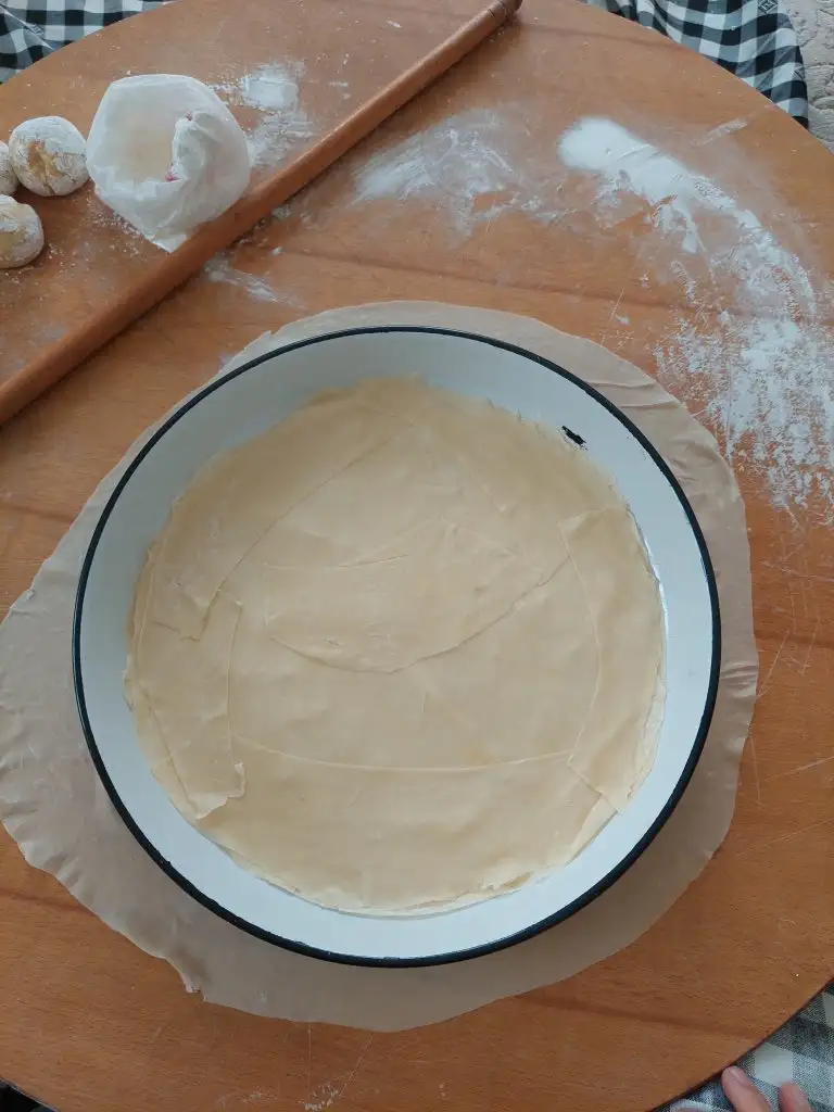 - Bir beze tepsiden daha büyük açılıyor tepsiye göre kesip geri kalan kısımları da içine kat olarak aralara koyuyoruz.Eki Görüntüle 3056256