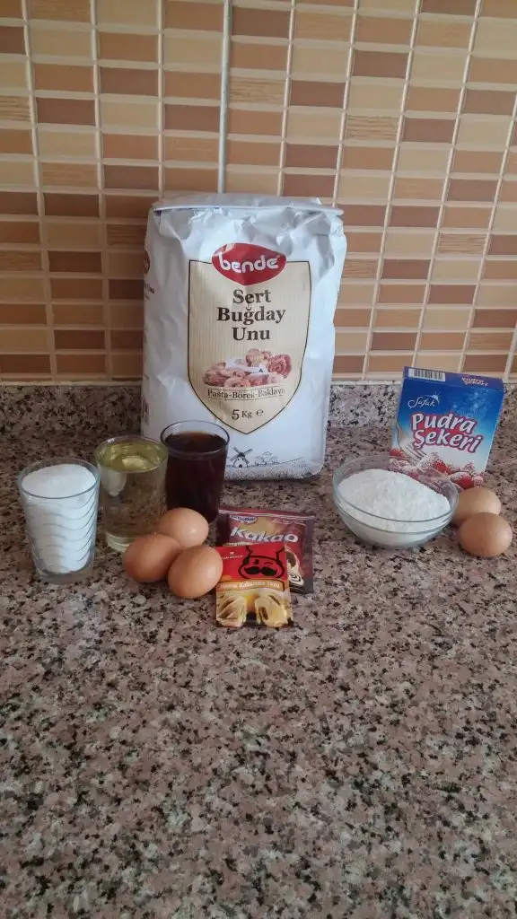 kek için olan diğer malzemeleri de karıştırıp çırpıyoruz.