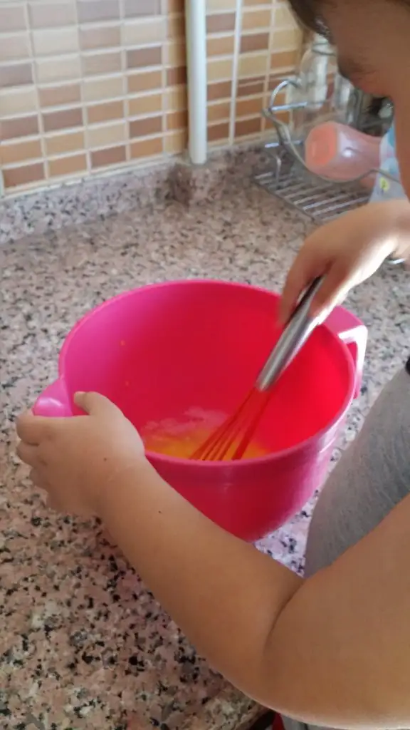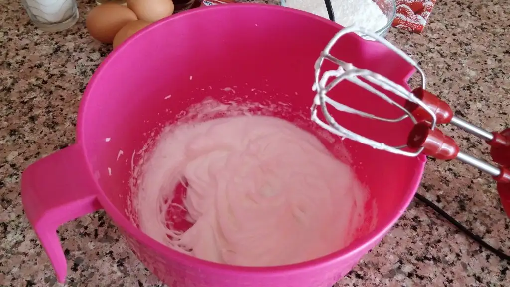 kek için yumurta ve şekeri iyice çırpıyoruz ki kekimiz güzel kabarsın