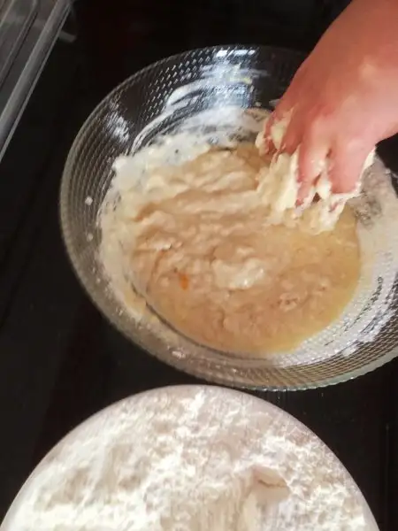 Karıştırdıktan sonra tuzumuzu ilave edip tekrar karıştıralım ardındAn unumuzu ve kabartma tozumuzu yavaş yavaş ekleyip ele yapışmayacak bir hamur yoğuralım