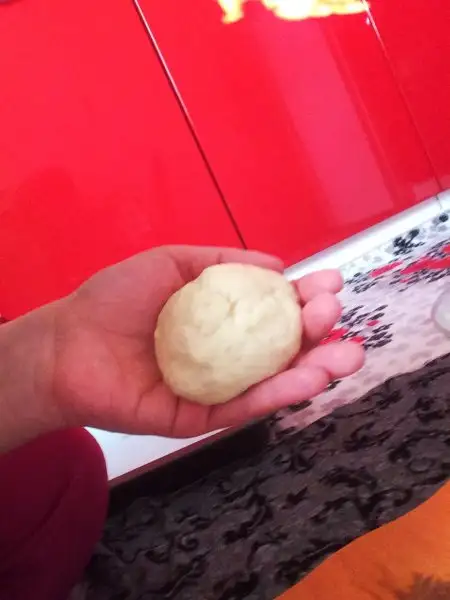 Şimdi sıra şekil vermede ben yuvarlak tercih ettim siz nasıl isterseniz öncelikle bu boyutta hamurumuzdan bir parça koparalım