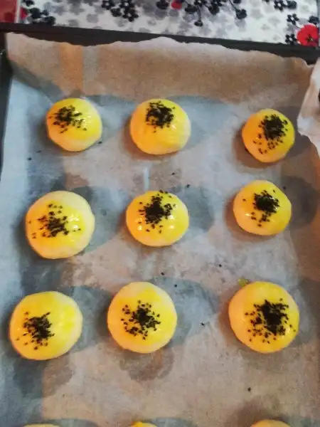ben yumurta sarısını yumurta kokmaması için 1 çay kaşığı yoğurt ve bir çimdik tuz koyuyorum üzerinede çörek otu tercih ettim