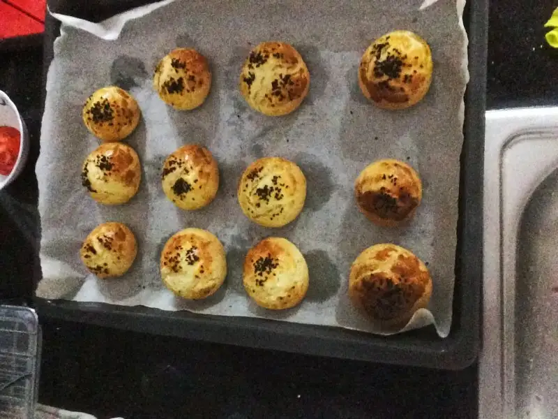 resimi yarım çekmişim 12 tane çıktı poğaçam şimdi pişirme zamanı mis poğaçam önceden ısıtılmış 175 derecede fırına...poğaçamız kızarınca kapatıp soğumasını bekleyelim