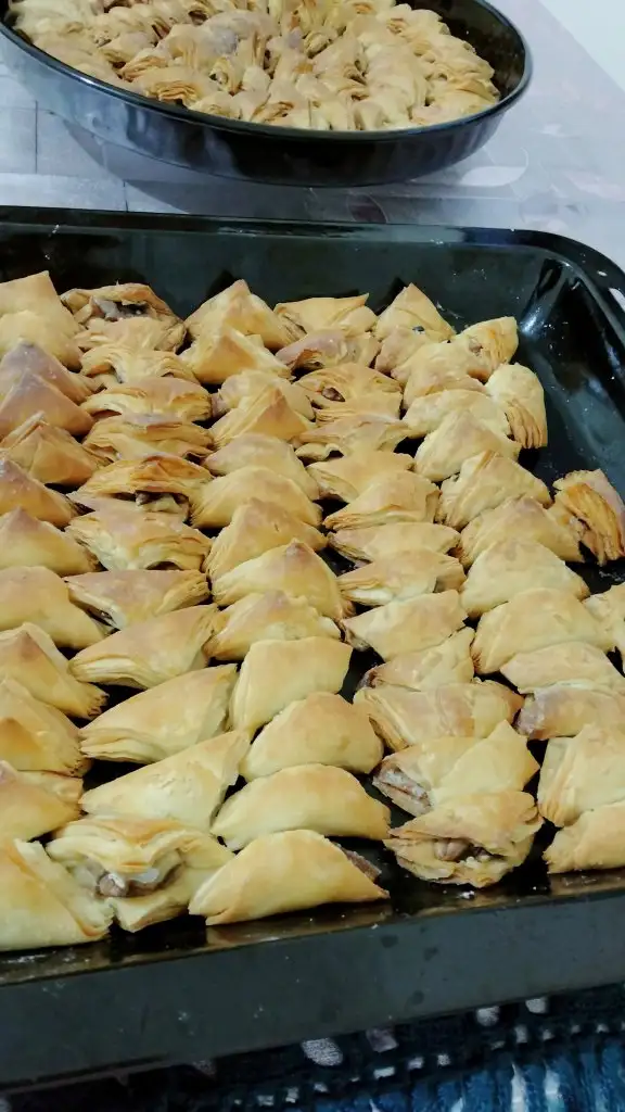 Ya ben baklava ya da türevlerini yapıyorum. Üstüne şekerli şerbet, kakao ve çikolata serpiyorum.