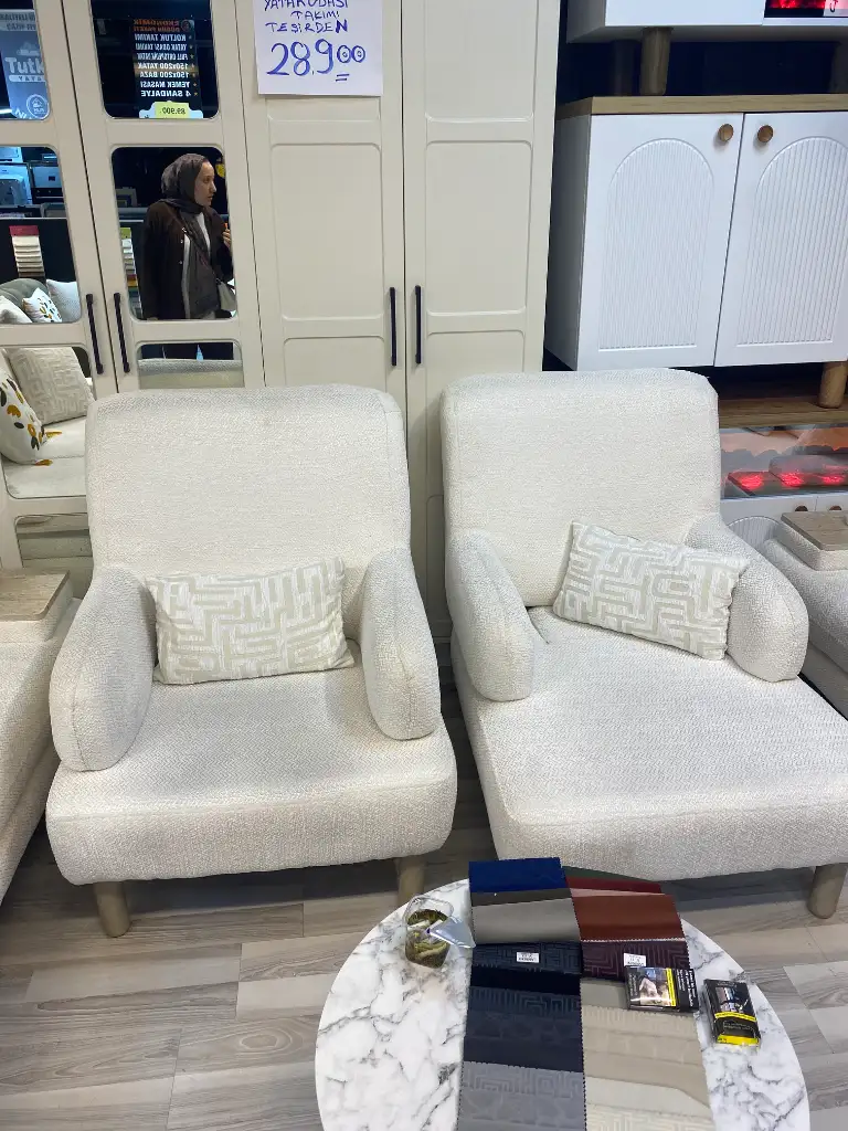 beyaz oldugu icin mi? ben valla koltuga kitap koyup üstüne koyuyorum cayimi limonatamiKız oraya limonata koysa biri, benim ödüm kopar konuşurken eli çarpacak koltuğa dökülecek diye.![]()