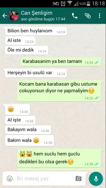 Benim ki de bu sabah hayatım Muck yazmış annem de telefonumu sabah alıp onun mesajını görmez mi bnde ona yazdım annem de seni öptü He diye cevap yazdım deli çocuk yaaa