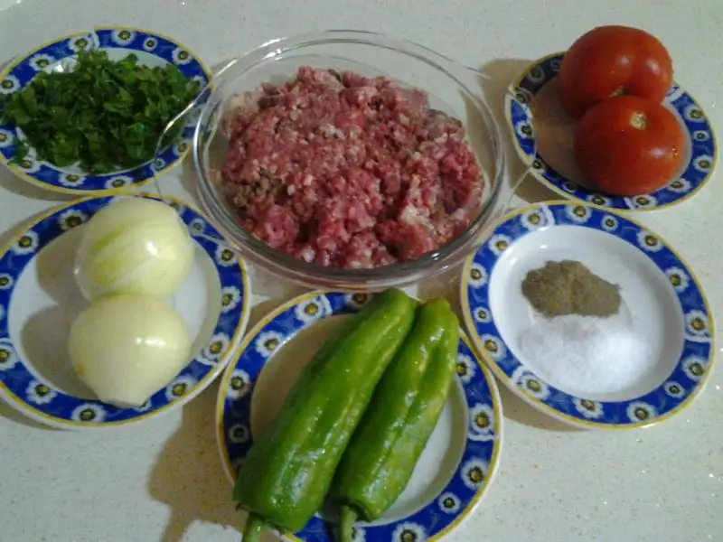 Yarım kilo kıyma, 2 adet soğan, 2 adet biber, 2 adet domates, yarım demet maydonoz, bir tatlı kaşığı tuz ve karabiber..