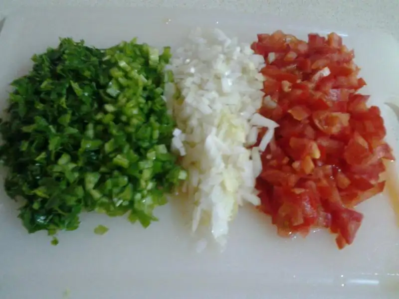 Domates maydonoz soğan ve biberi ince ince kıyıyoruz...sakın rende veya robot kullanmıyoruz...