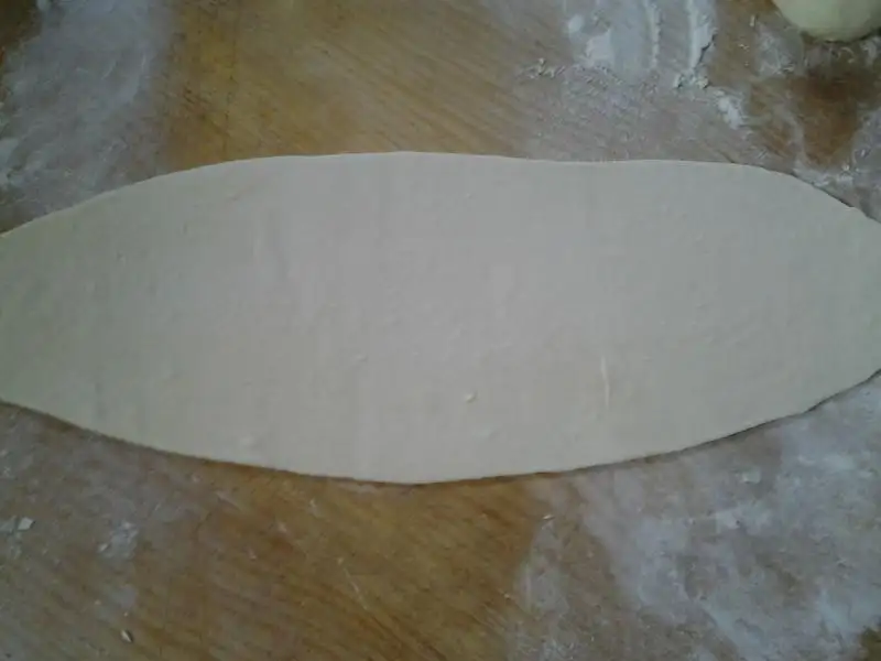 Hamur açma tahtasında (yani senitte) limon büyüklüğünde yaptığımız bezeleri ince uzun şekilde merdaneyle tepsi boyunca açıyoruz...