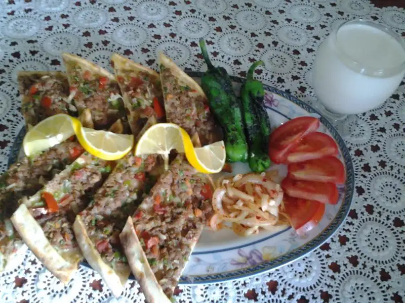Son olarak fırın tepsisine serdiğimiz yağlı kağıdın üzerine ekmeklerimizi diziyoruz ve 180 derece ısıda kenarları kızarana kadar pişiriyoruz.... Fırından çıkar çıkmaz asimetrik şekilde kesip servis tabağına alıyoruz, közlenmiş biber, sumaklı soğan ve ayran eşliğinde Afiyetle yiyoruz..