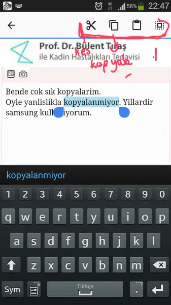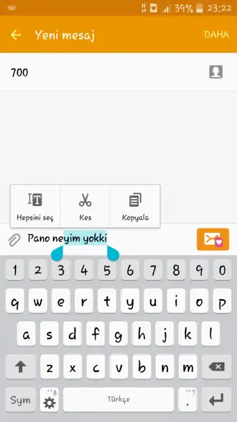 Mesaj yazmadsn bak bide kopyala yerine tikla bakimAy benim telefonda yokki ooo :/