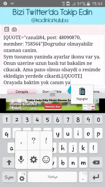 Senin panoda vardir ama yanlis yapmissin. Sen kelime secerse kopyala yada kes cikar. Bos yere tiklaman gerek...Ay benim telefonda yokki ooo :/