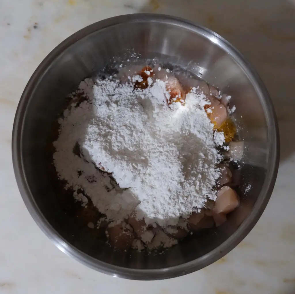 Geniş bir karıştırma kabına tavuklarımızı alıyoruz. Ardından sırayla sodamızı, baharatlarımızı ve unumuzu ekliyoruz. Tüm malzemeleri, güzelce karışıp homojen bir kıvam alıncaya kadar karıştırıyoruz. Baharatların o leziz kokusu burnumuza doldukça, lezzetin ilk adımlarını atmış oluyoruz.