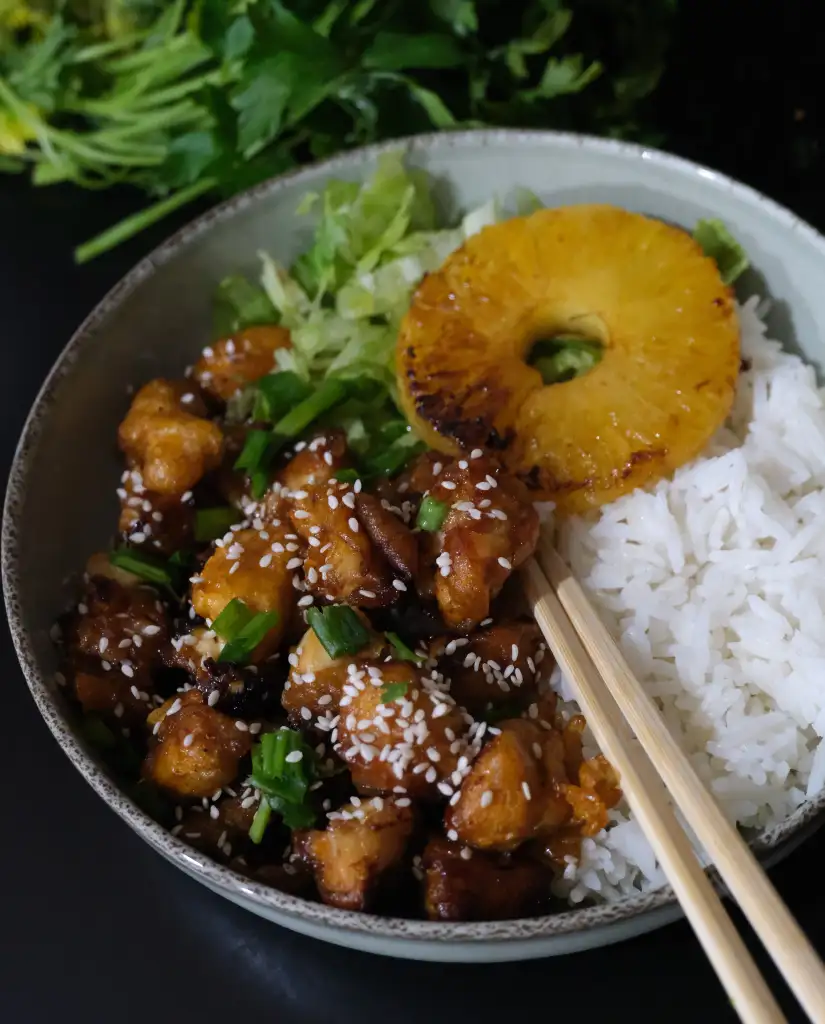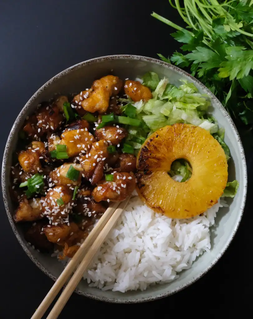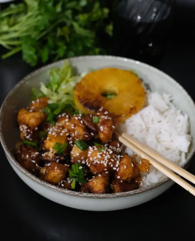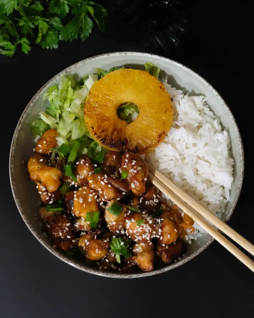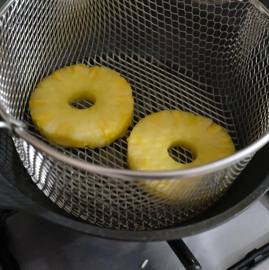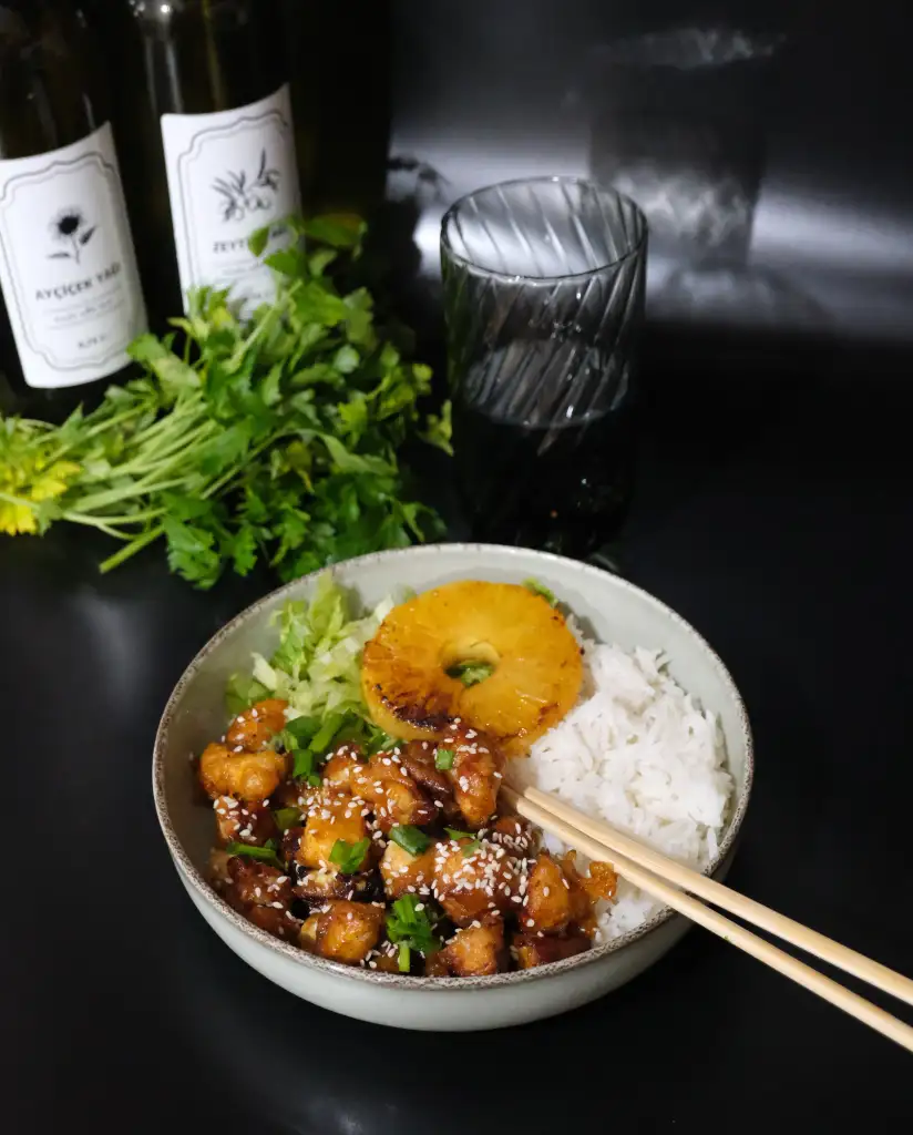 İşte geldik en sevdiğim aşamaya. Kızarmış ananasların tavukla uyumu muhteşemdir. Eğer henüz denemediysen mutlaka şans vermelisin. Ama "ananas bana göre değil" diyorsan hiç sorun değil; bir sonraki aşama ile bu enfes tarife devam edebilirsin.