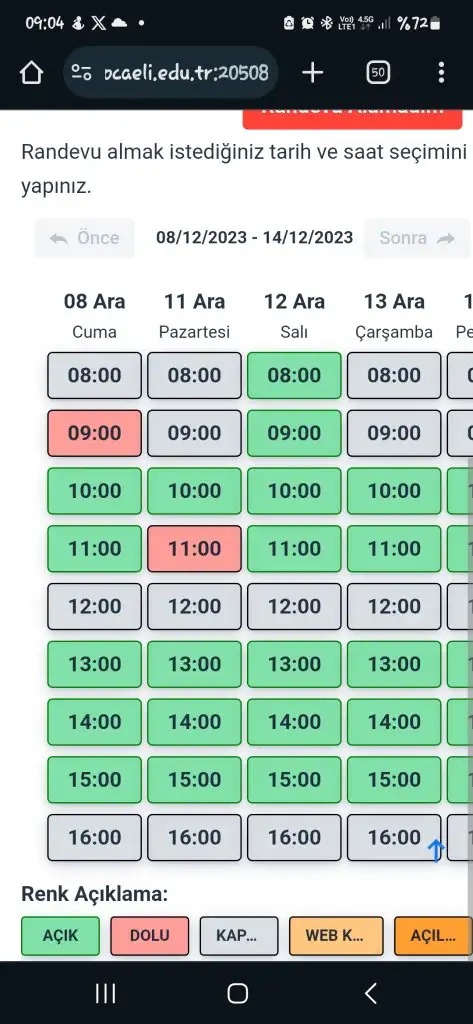 Telefonla arayıp yapıyordum şimdi tekrar bakacağımHatta şimdi baktım randevu var yanlış yere mi bakıyorsunuz acaba resim ekledim
