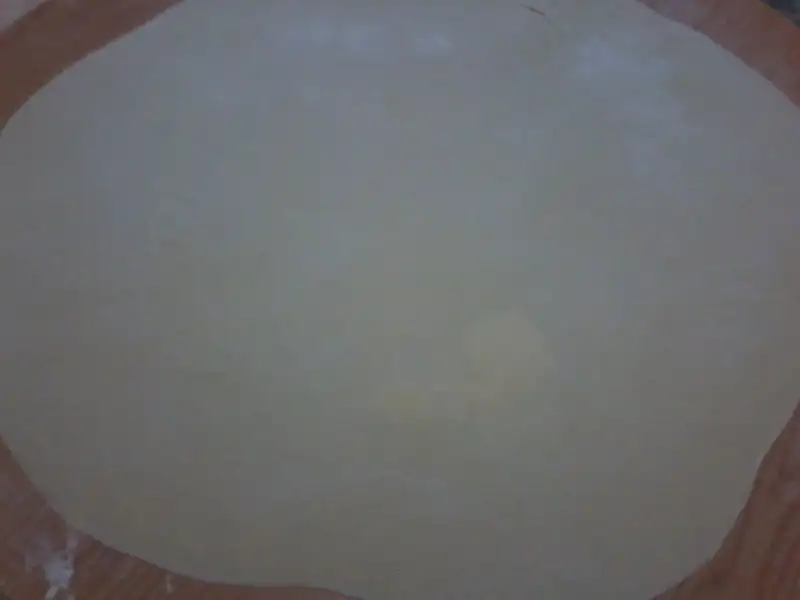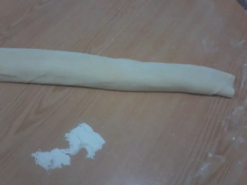 Açtığım hamurun üzerini unlayıp ( biraz bolca unlayıp ) rulo halinde katladıktan sonra kestim