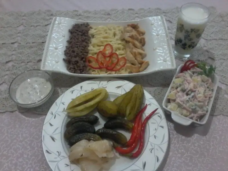 Yanında kızarmış tavuk göğsü , acı sos ,turşu , ayran ve Rus salatasıyla sizlere servis yapıyorum .