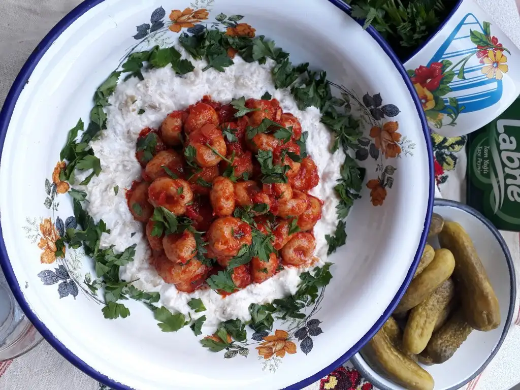 soğanları ve sarımsaklari yemeklik doğruyoruz . Sıvıyagda biraz kavuruyoruz. Üzerine salcalarimizi ve domatesimizi, baharatları ekleyip pişiriyoruz. Eğer çok katı bir sos olursa, haşlama suyundan biraz ekleyip açabilirsiniz. Daha sonra haşladığımız köftelerimizi ve sosumuzu birleştiriyoruz. Her yerinin sosumuzla buluşmasını sağlıyoruz.